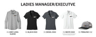 (3) LOG125 OGIO® Ladies Framework Polo in Black, Diesel Grey, and Bolt Blue with ESstack Logo