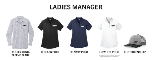 Horizon Companies - Equipment ShareManagers Ladies Kit Includes(1) LW644 Port Authority ® Ladies Broadcloth Gingham Easy Care Shirt in Gusty Grey with ESstack Logo (3) L569 Port Auth...