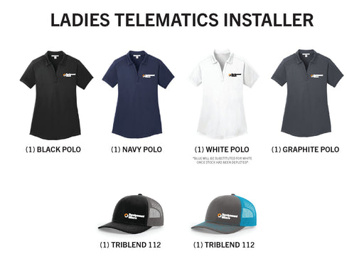 Horizon Companies - Equipment ShareThe Ladies Telematics Installer Kit includes: (5)L569 Port Authority Ladies Diamond Jaquard Polo in Black(1), Blue(2), Navy(1), and Graphite(1). Al...